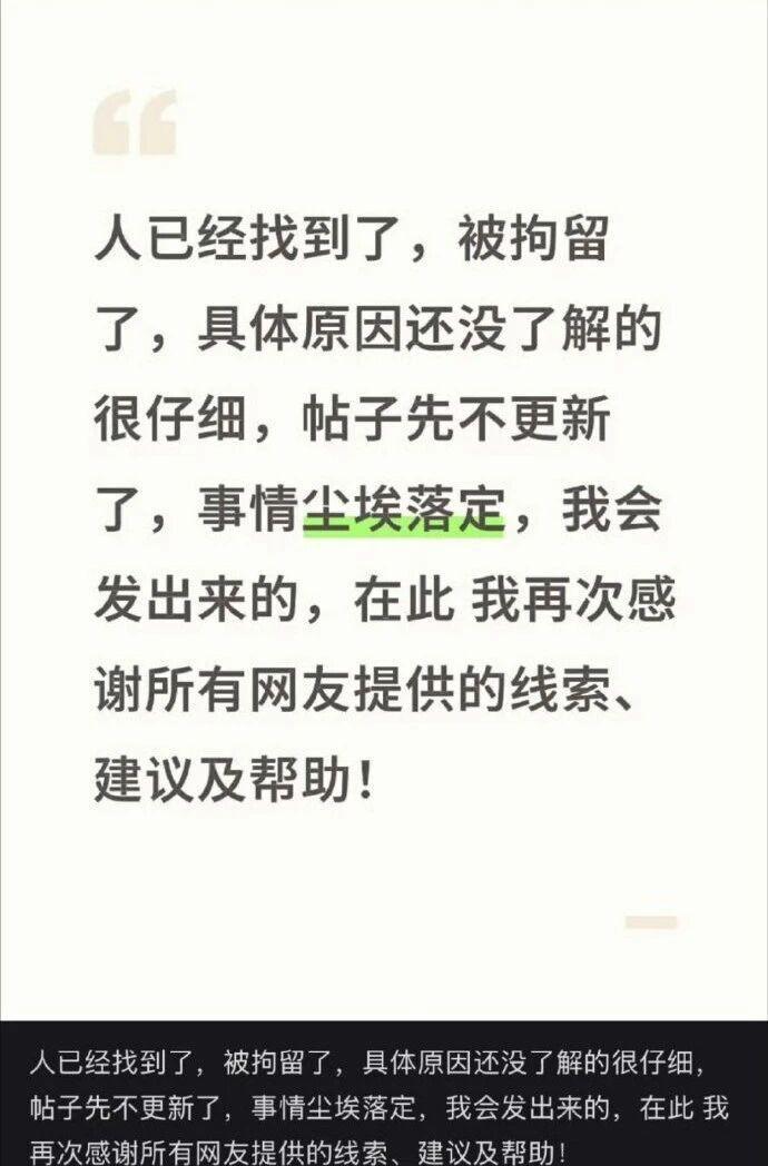 另据现代快报消息:记者联系上发帖博主,对方表示,帖文内容属实,女孩的确找到了,没什么问题。