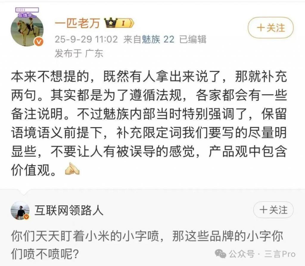本来不想提的,既然有人拿出来说了,那就补充两句。其实都是为了遵循法规,各家都会有一些备注说明。不过魅族内部当时特别强调了,保留语境语义前提下,补充限定词我们要写的尽量明显些,不要让人有被误导的感觉,产品观中包含价值观。