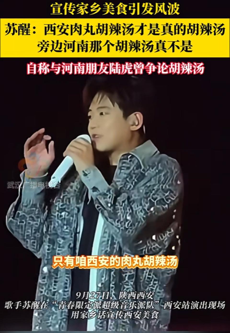 近日,歌手苏醒在 " 青春限定派超级音乐派队 " 西安站演出现场,用家乡话宣传西安美食。相关话题冲上微博热搜。