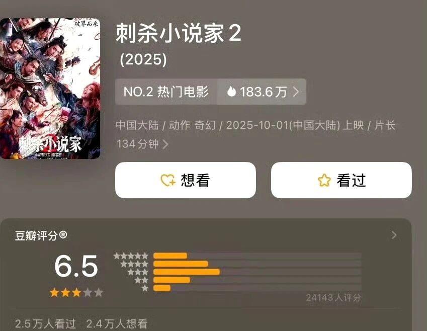4. 《刺杀小说家 2》:6.5 分的特效狂欢与剧情争议