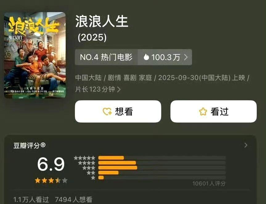6.9 分的评分中规中矩,豆瓣评论里 " 黄渤一出场就想笑 "" 结尾看哭了 " 的声音很集中。