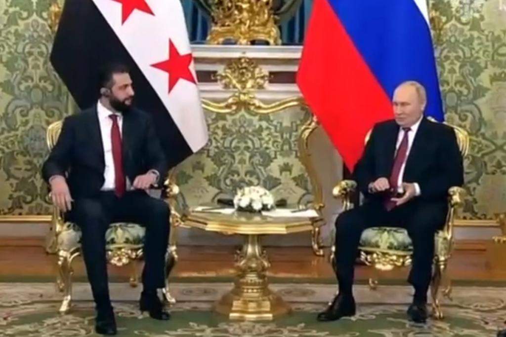 当地时间 10 月 15 日,俄罗斯总统普京与到访的叙利亚政权领导人艾哈迈德 · 沙拉在克里姆林宫举行会谈。双方讨论俄叙双方在政治、经贸、人文等领域关系的现状和发展前景以及近期的中东局势。