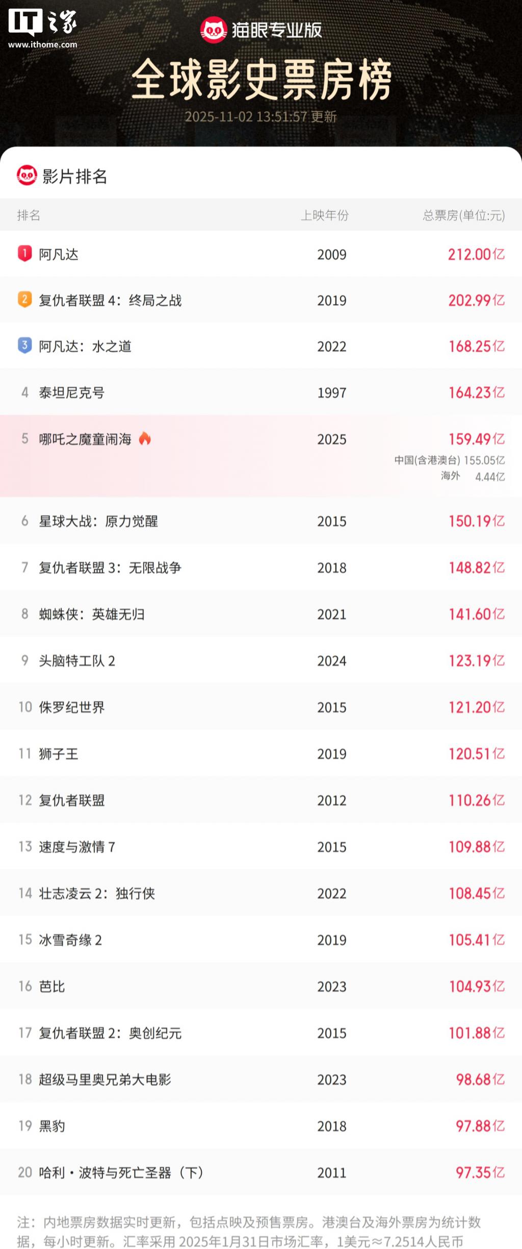 值得一提的是,动漫作品的票房号召力往往十分巨大,漫威《蜘蛛侠》这一经典漫画角色的影视改编权便在索尼手上,系列电影已历经三代主演。凭借着 " 三蛛同框 " 这一爆点,在 2021 年上映的《蜘蛛侠:英雄无归》便一举拿下了 141.6 亿票房,位居全球影视票房榜第 8。
