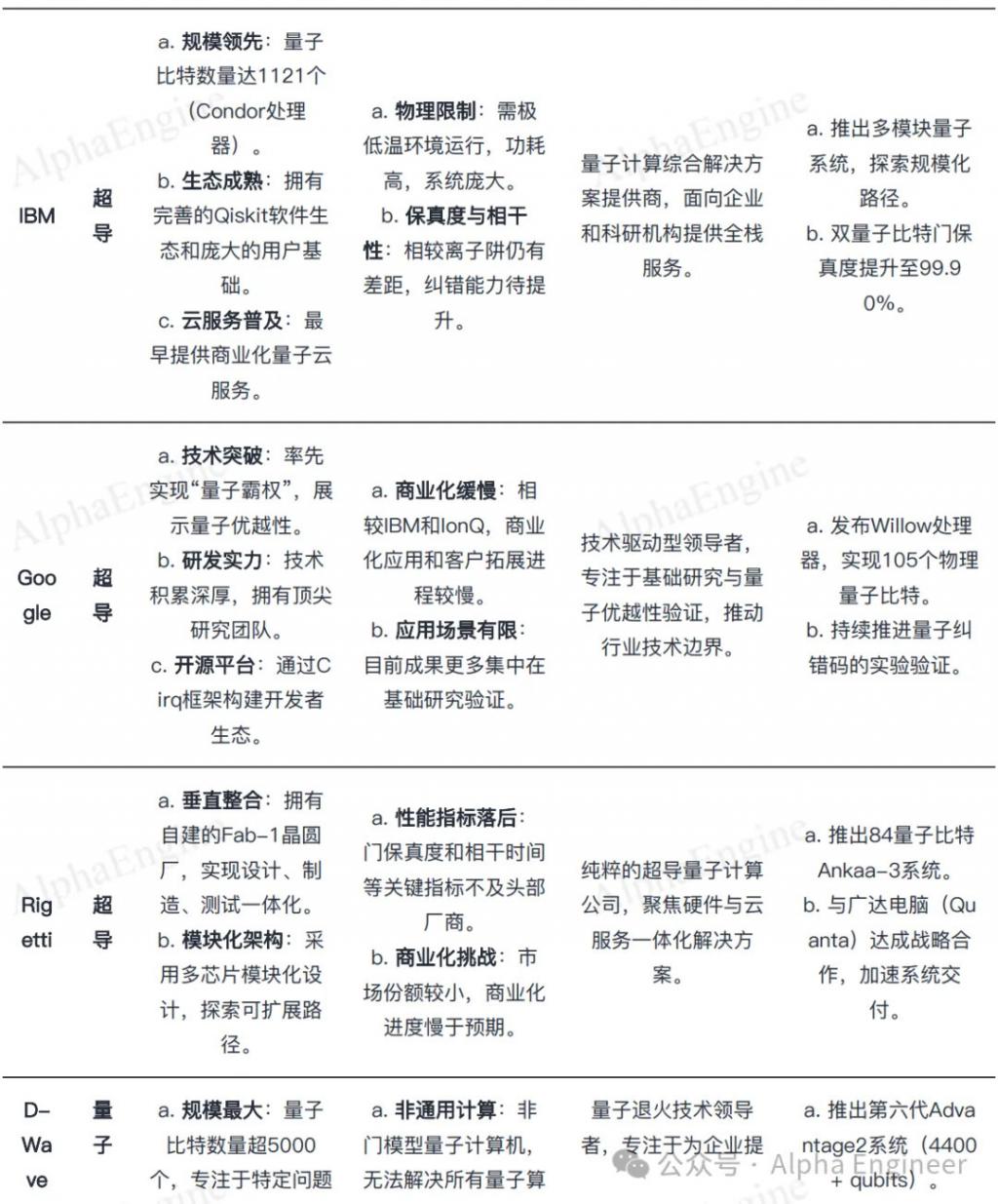 其余市场份额由 D-Wave(量子退火)、Rigetti(超导)、Quantinuum(离子阱)等其他技术路线的参与者瓜分,行业整体仍处于技术路线尚未收敛、商业模式持续探索的早期阶段。