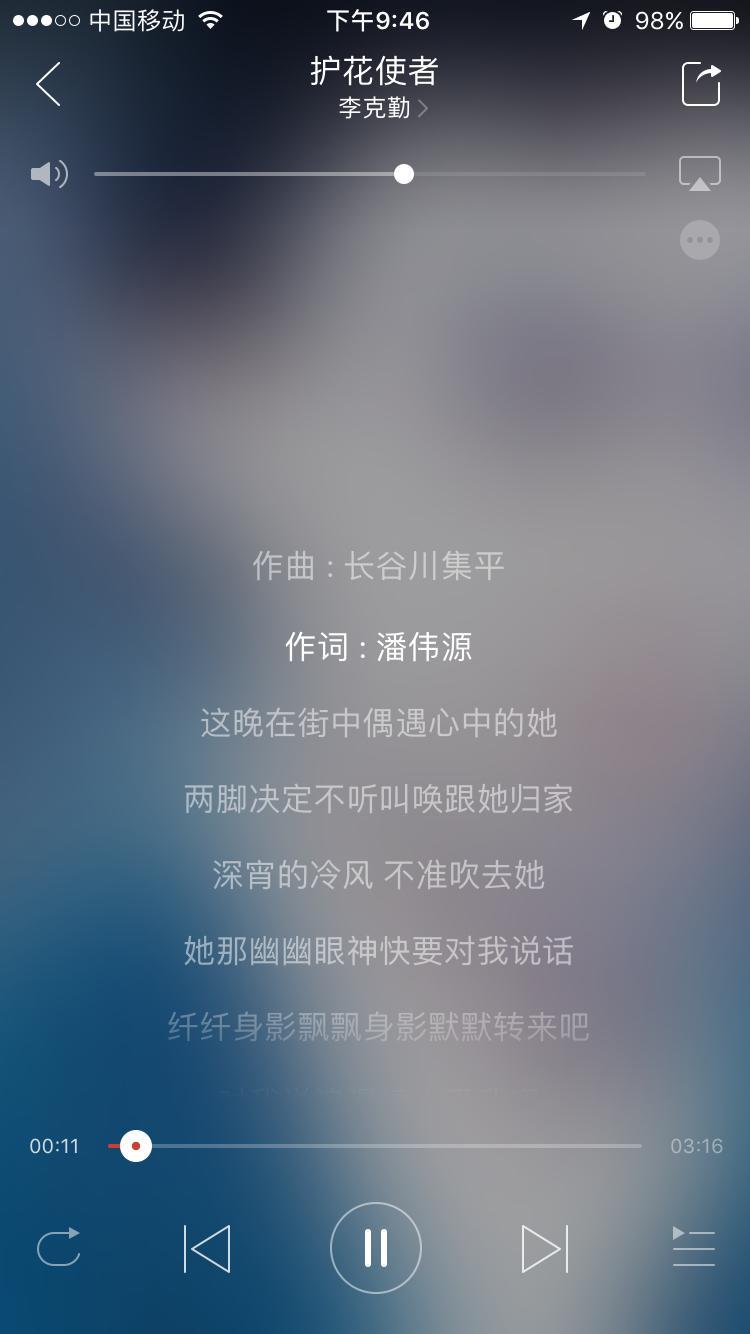 1.护花使者——李克勤(王多鱼签约夏竹后的粤语歌曲,经典老歌,伴奏起来的时候,我也不自觉的抖起腿来了,是的,旁边的人以为我有帕金森呢,要不是在电影院我可能能跳起来……)