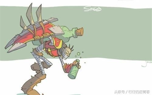 科学狂人:换色皮肤。科学狂人 辛吉德(Mad Scientist Singed)来源于经典的科学狂人形象。在游戏发售前这个皮肤和蒙多医生的经典皮肤很像。