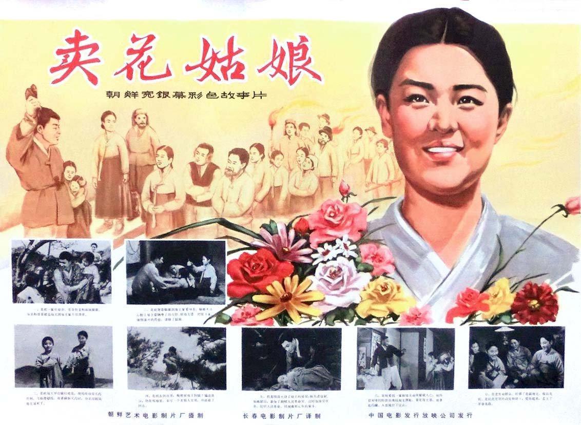 其中前面三句都好理解,比如当时我们看到的朝鲜电影《卖花姑娘》、《金姬和银姬的命运》、《摘苹果的时候》等,的确让人又哭又笑。