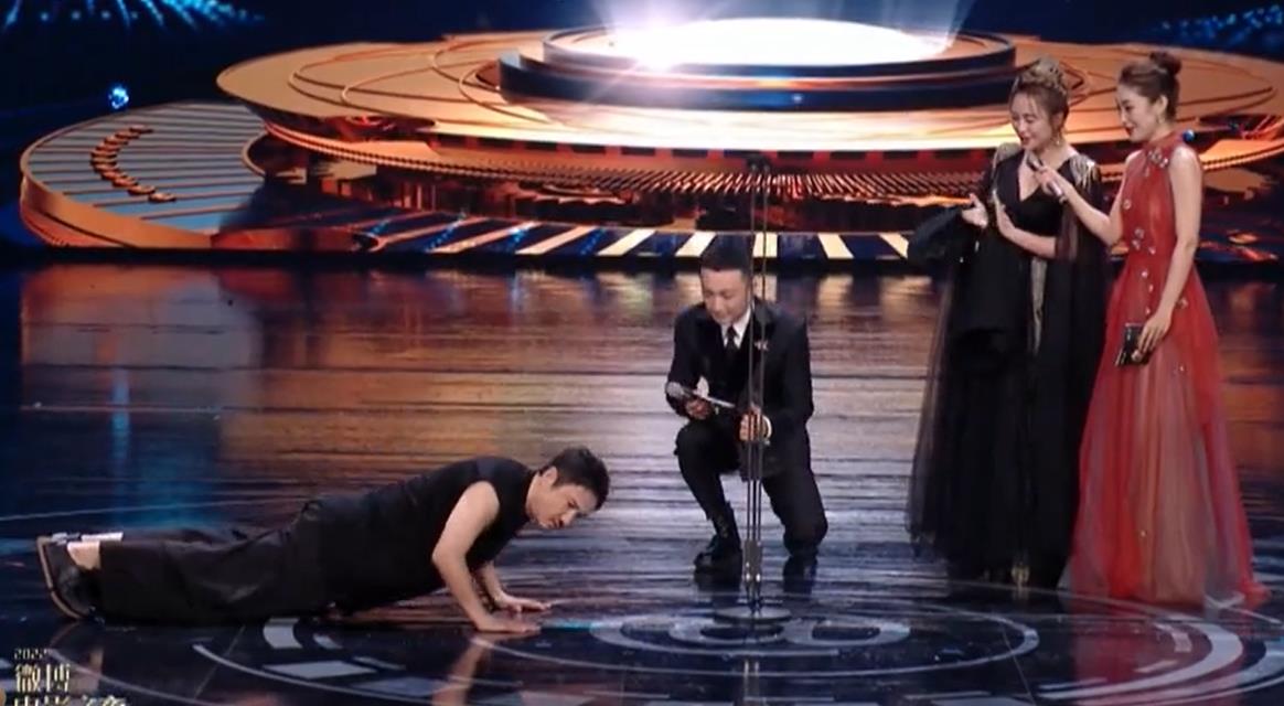 上台领奖时,沈腾还自曝自己瘦了20斤,主持人让他做几个俯卧撑证明一下,沈腾二话没说脱掉上衣就开始做。