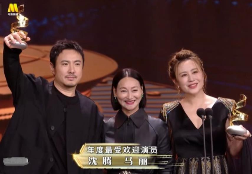 到了和马丽一起荣获年度最受欢迎演员奖,看沈腾老师这高举奖杯的霸气+略有一丝丝刻意浮夸的造型,我就想说不愧是沈叔叔,堪称仅凭一己之力,把电影之夜变成了又一部腾式喜剧。