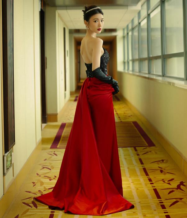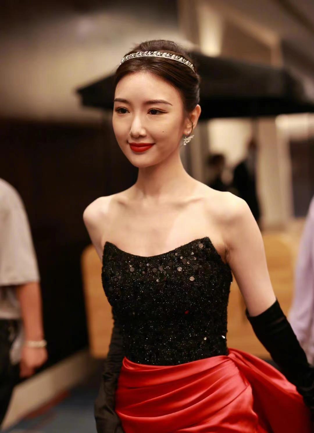原本再现赫本风造型的毛晓彤,一袭黑红礼裙应该是十拿九稳。