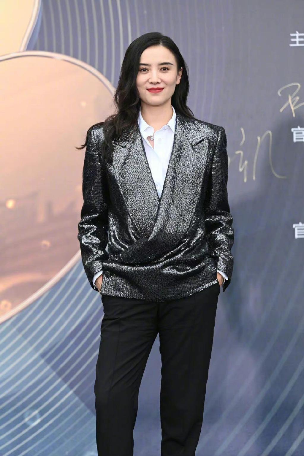 宋佳的造型很特别,一件亮片外套+烟管裤+高跟鞋,穿出了自信洒脱的大女主气场,配上她本人的清冷气质效果就绝佳。
