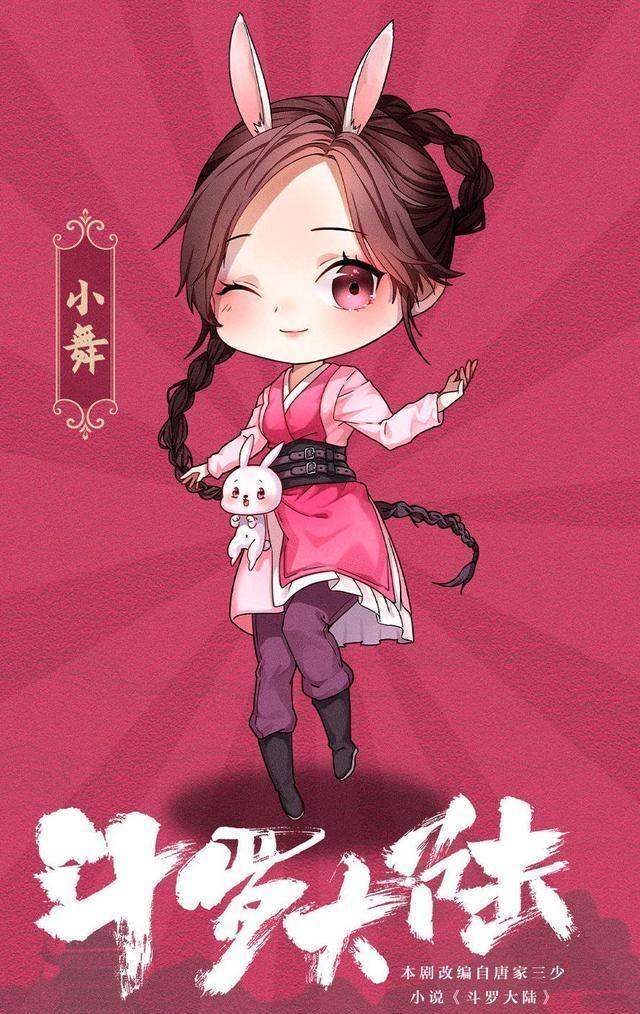 作为女主的小舞,是由吴宣仪饰演的,据说是由唐家三少亲自选定的角色,至于真假,现在无从考究。不过小舞的Q版形象,个人感觉,还是非常呆萌可爱的。毕竟小舞是由柔骨兔进化而来,自然是要有如此一面了。在小舞的腰间还有一只可爱的大白兔,是不是说明小舞依旧是爱着兔子呢?