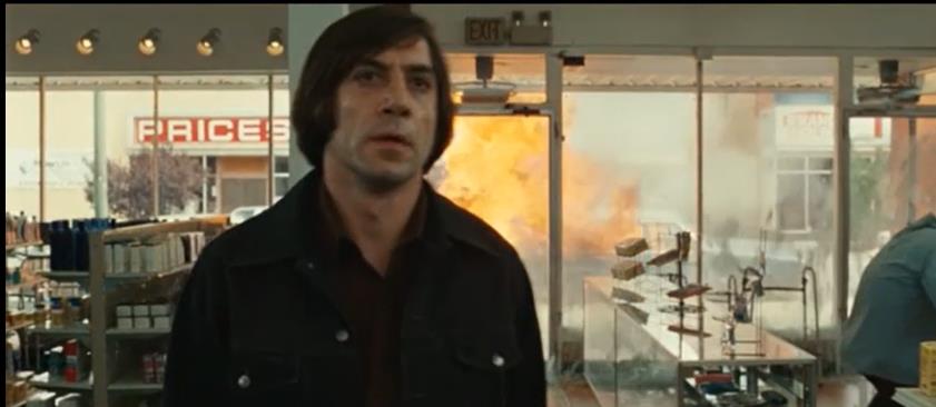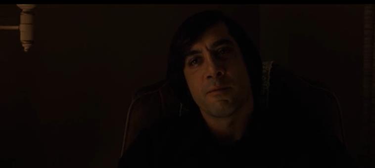 整部影片从开头到结尾,除了中间一小段吹奏声外,没有任何背景音乐,就是这样一部几乎背景音乐的电影,却玩出了高冷的装逼犯,男主凭借此片获得奥斯卡金像奖,从猎人变成被杀手追杀的猎物时,注定这场对手戏不简单,一方是精通布置陷阱打猎的猎人,遗憾的是拿了黑钱却被追杀,更可怕的是这个追杀的人是个变态杀手,他一脸面瘫,发型像个女人,杀人的武器也从没见过,但是却是这样杀手却能霎时间透露出惊悚的杀气,让人望而生畏