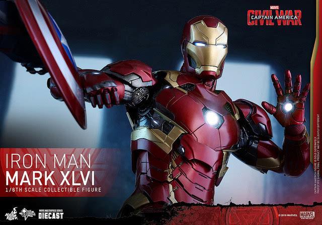 马克46是托尼的第46套机甲,首次登场于《美国队长3》中,所以马克46机甲又称为内战机甲或者是血边机甲。配色方面依然是采用了钢铁侠最爱的红金配色。相较于前面的机甲,更加优秀。