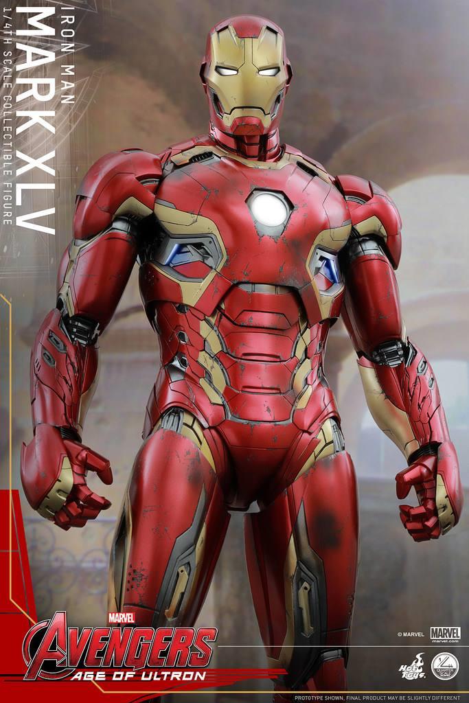 马克45登场于《复仇者联盟2》中,首次装上了人工智能“星期五”。这是贾维斯成为幻视之后,托尼所制作的全新的战甲。为了避免审美疲劳,将战甲变得更加有棱角。