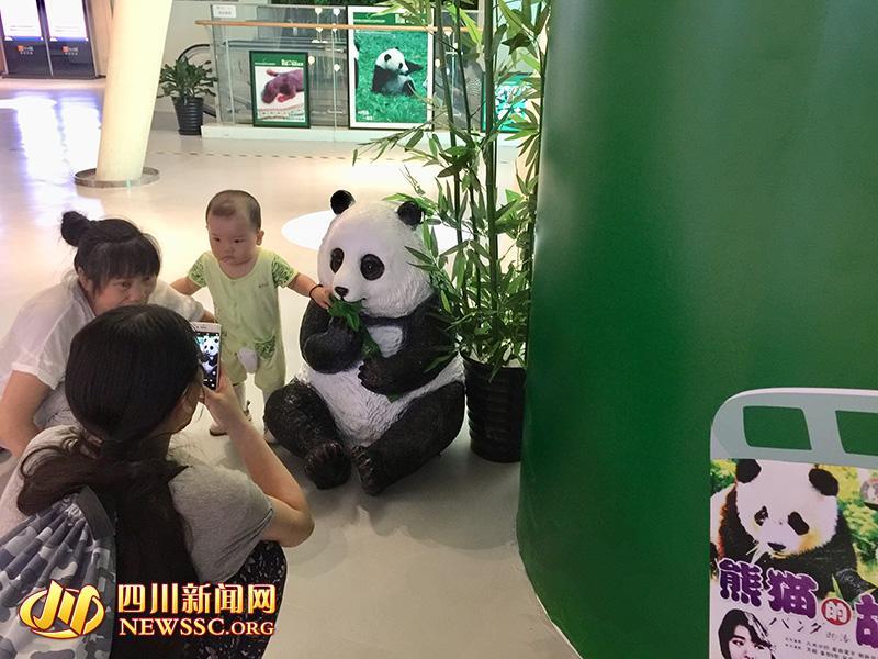 熊猫雕塑吸引了小朋友的停留