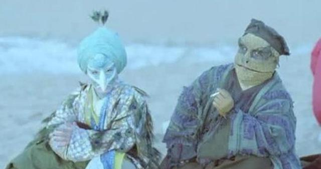 看到这张图片的时候,大家一定会笑嘻嘻吧,两个妖怪似乎是在雪地当中坐着,而左边的那位用眼神直勾勾的看着前方,不知道在想些什么,如果大白天的看见这样两个人想必会吓坏吧,而右边抽烟的师傅一看就是一个中年人,那种气质与眼神想隐藏都是隐藏不了的。不过这种气质和现在的大众演员相比倒是独特很多。