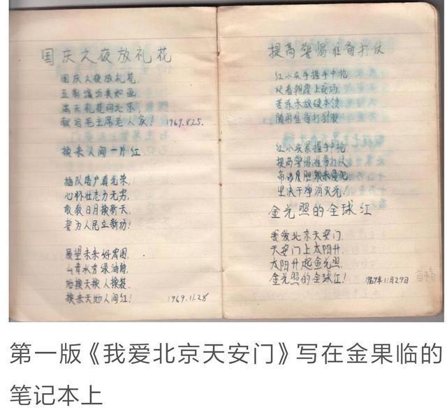 词作者,是小学5年级13岁学生金果临(原名金果苓,幼年时被阴差阳错地“登记”成了现在的名字);