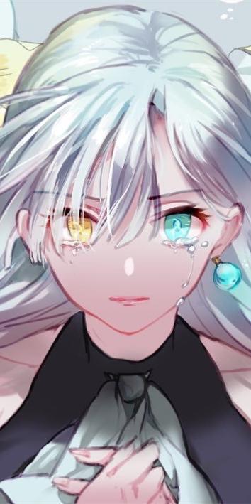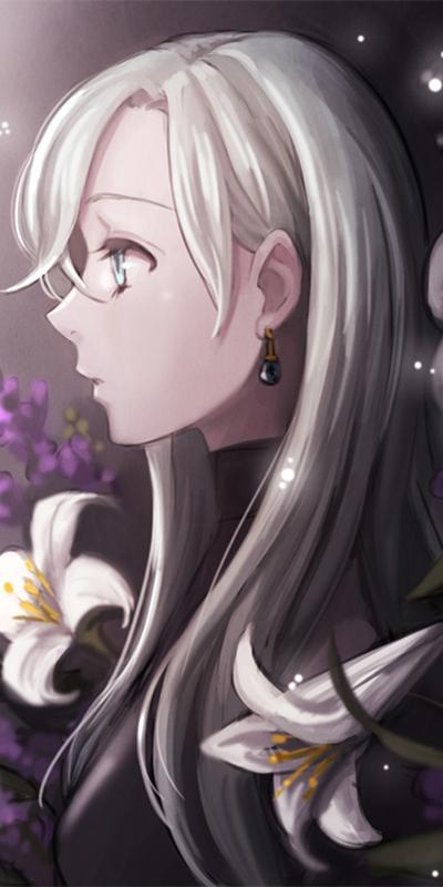 银发蓝眸,端庄的美人,刘海挡住右眼。