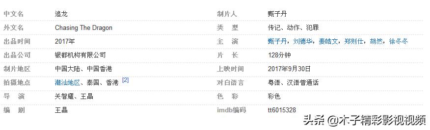 《追龙》是由银都机构有限公司出品的动作犯罪片,由王晶、关智耀执导,甄子丹领衔主演、刘德华特别演出、郑则仕、姜皓文、刘浩龙、胡然、徐冬冬等联合主演。该片于2017年9月30日在中国内地上映。该片讲述了能打敢拼的伍世豪从汕头偷渡来到香港为了长久生存之道,他与心思缜密的探长雷洛联手制霸香港的故事。