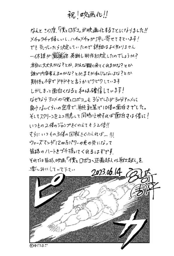 另外,6月19日发售的《周刊少年jump》28号(集英社)刊登了确定成为电影女演员的roboco将挑战自主制作电影的《女演员与机器人》。《女演员与机器人》的封面插图中,描绘了从电影院的银幕上跳出来的roboco的身影。