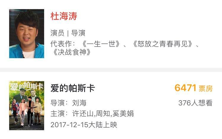 杜海涛主演电影爱的帕斯卡票房六千元 网友:活该业务能力太差