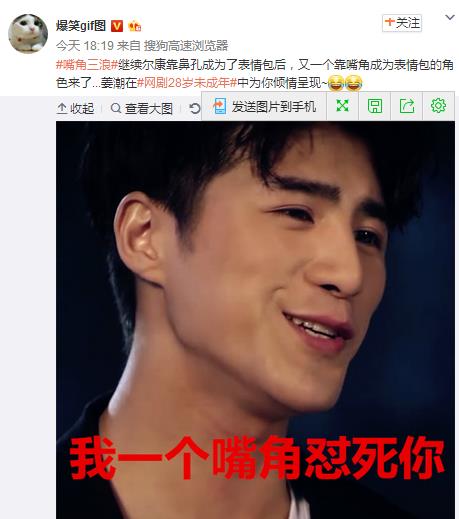 而最不忍直视的是,剧中姜潮时刻保持歪嘴笑,画面太魔性,以至于被网友晒出来各种恶搞。更是与张翰、赵四齐名,号称全部的演技都体现在了嘴角上的”嘴角三浪”。更有网友调侃道:姜潮靠歪嘴角将张翰魔性表情帝挤下神坛。