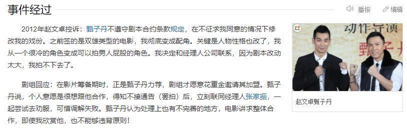 在面对媒体质疑时,赵文卓却来个惊天逆转,自曝同剧组的甄子丹才是真正的“戏霸”,并表示自己在片场曾遭到以甄子丹为首的冷落和不公正对待。