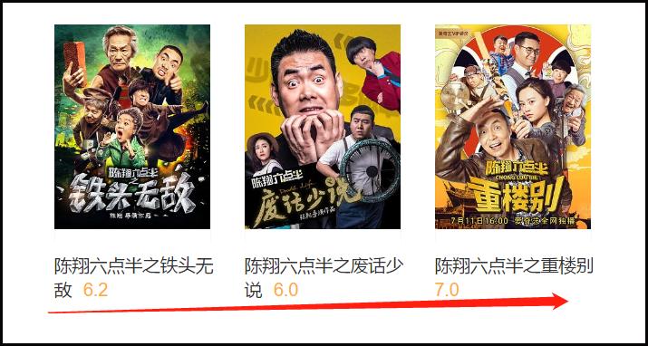 7月11日,“陈翔六点半”系列的第三部大电影作品《陈翔六点半之重楼别》正式上线了,这是第三部网络大电影,也是三部里目前评分最高的一部,豆瓣7.0,爱艺奇8.7。