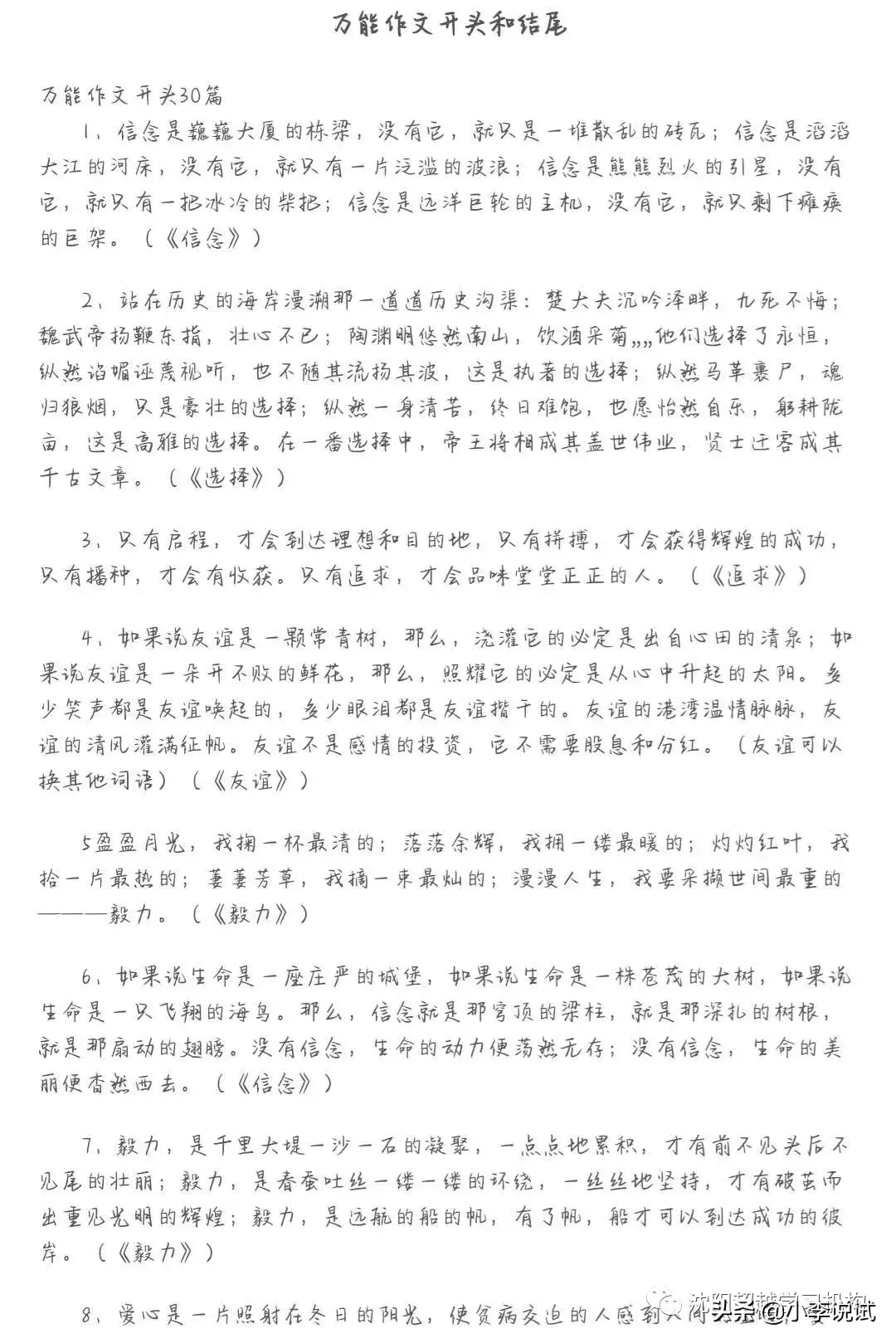 《万能作文开头30篇和结尾50篇》+可打印