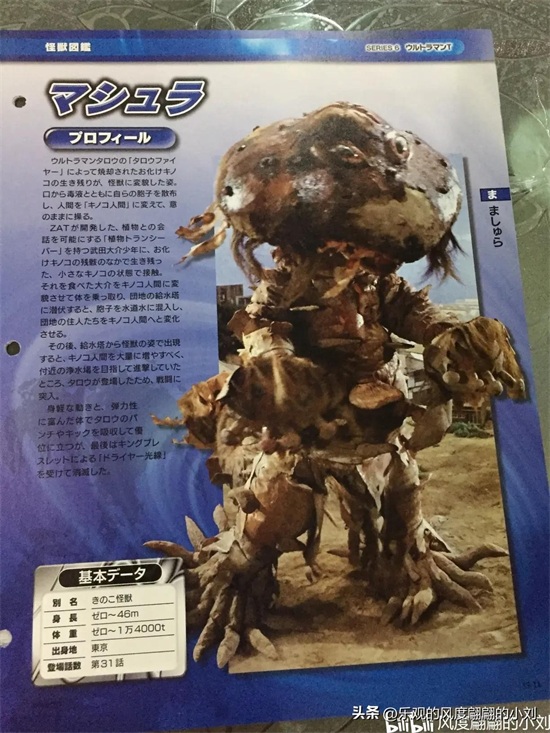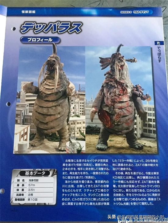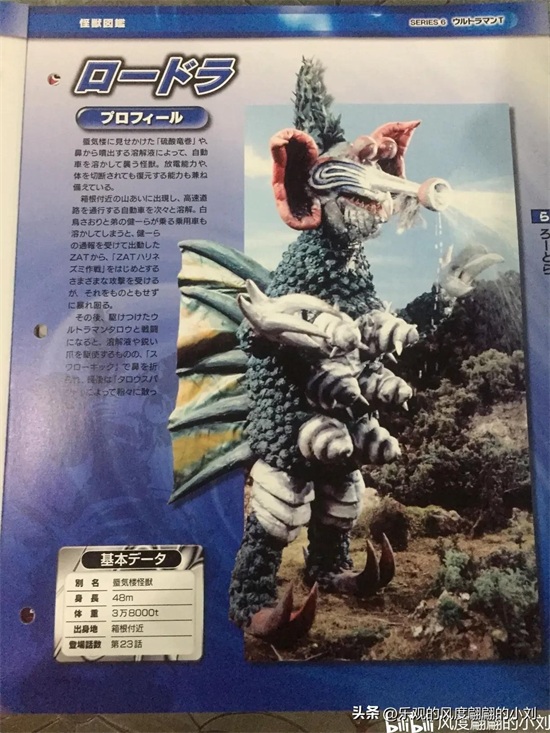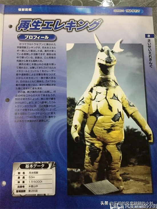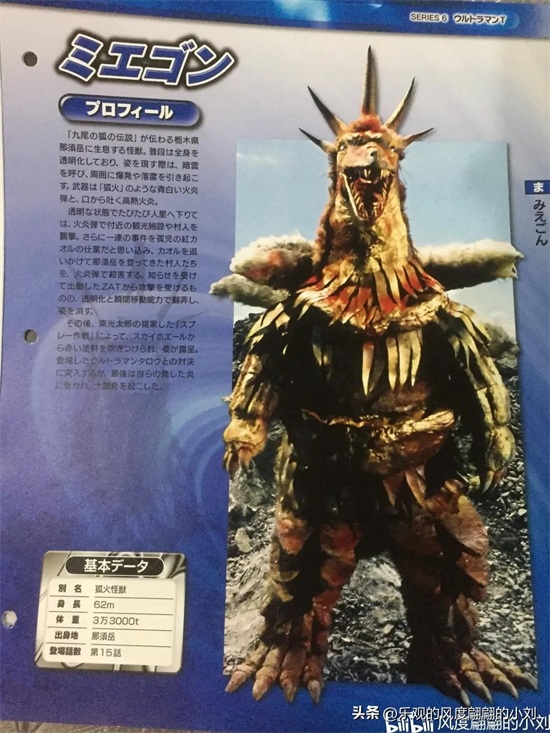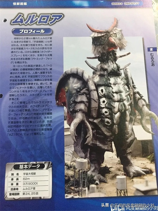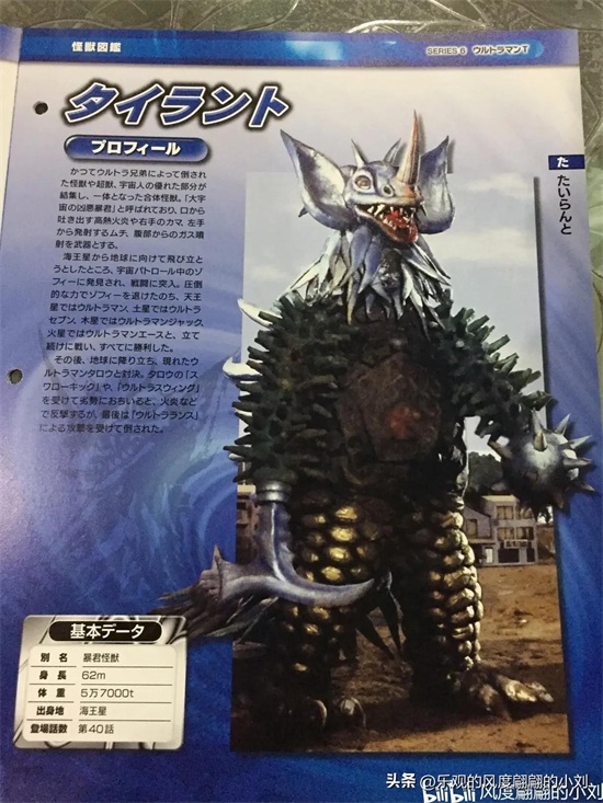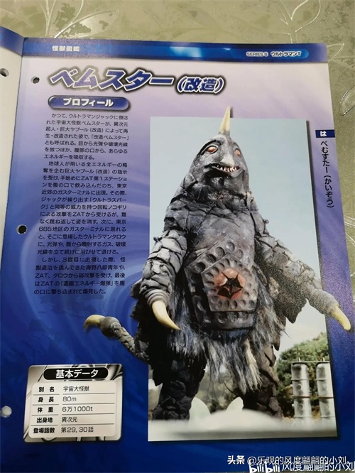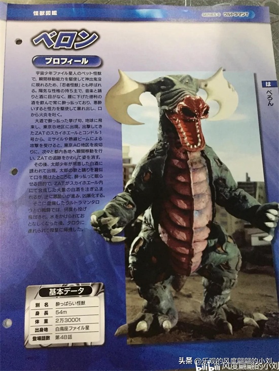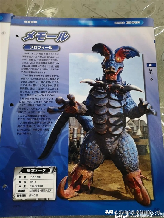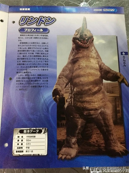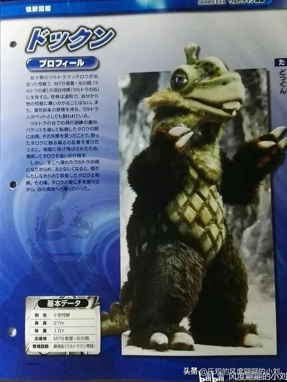 这是幼年泰罗遇到的怪兽,它栖息在M78星云光之国奥特之谷, 性格温和,不会主动向其他怪兽袭击。拥有怒乐的感情。智力很高,还能理解奥特曼的语言。虽然性格温厚,但是被欺负的话会猛烈地生气。