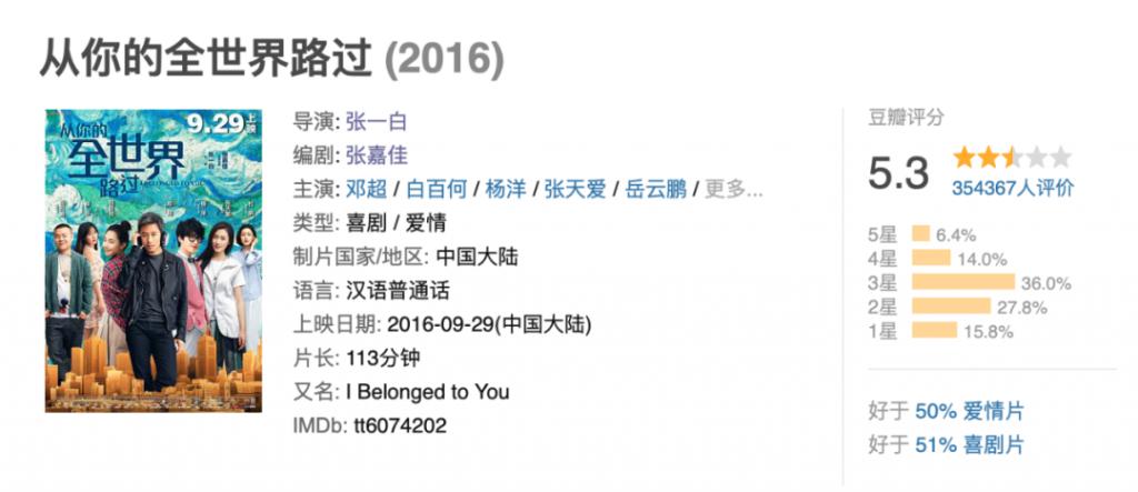 2016 年,又以编剧身份改编了自己的小说《从你的全世界路过》。