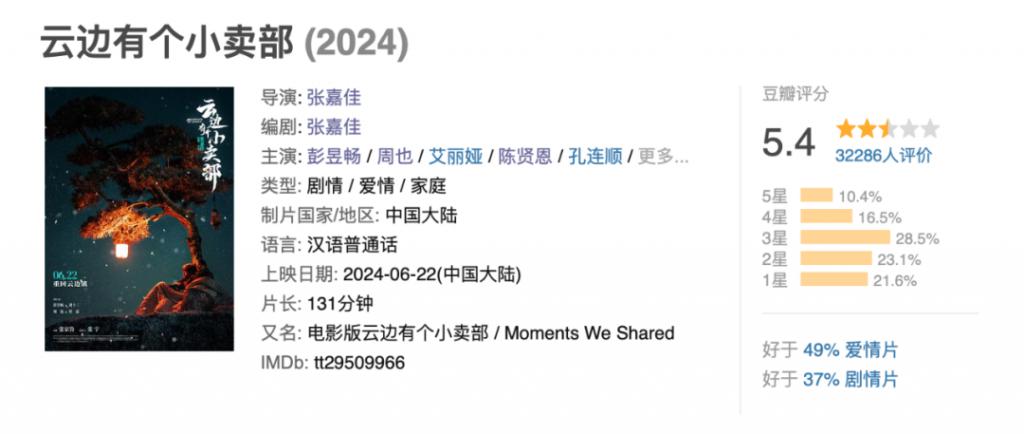 《云边有个小卖部》截至目前票房竟然已过 2 亿。