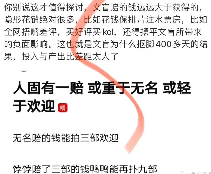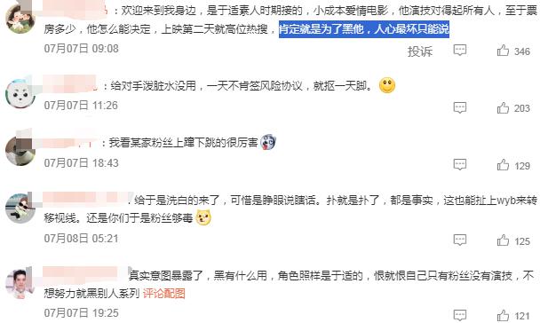 这种搬起石头砸自己脚的操作,怎么看都算不上高明,甚至还拉了与王一博粉丝的仇恨,说王一博的票房看着高,但投资、宣发、买水的成本更高,投入产出比差距太大,赔的更多。
