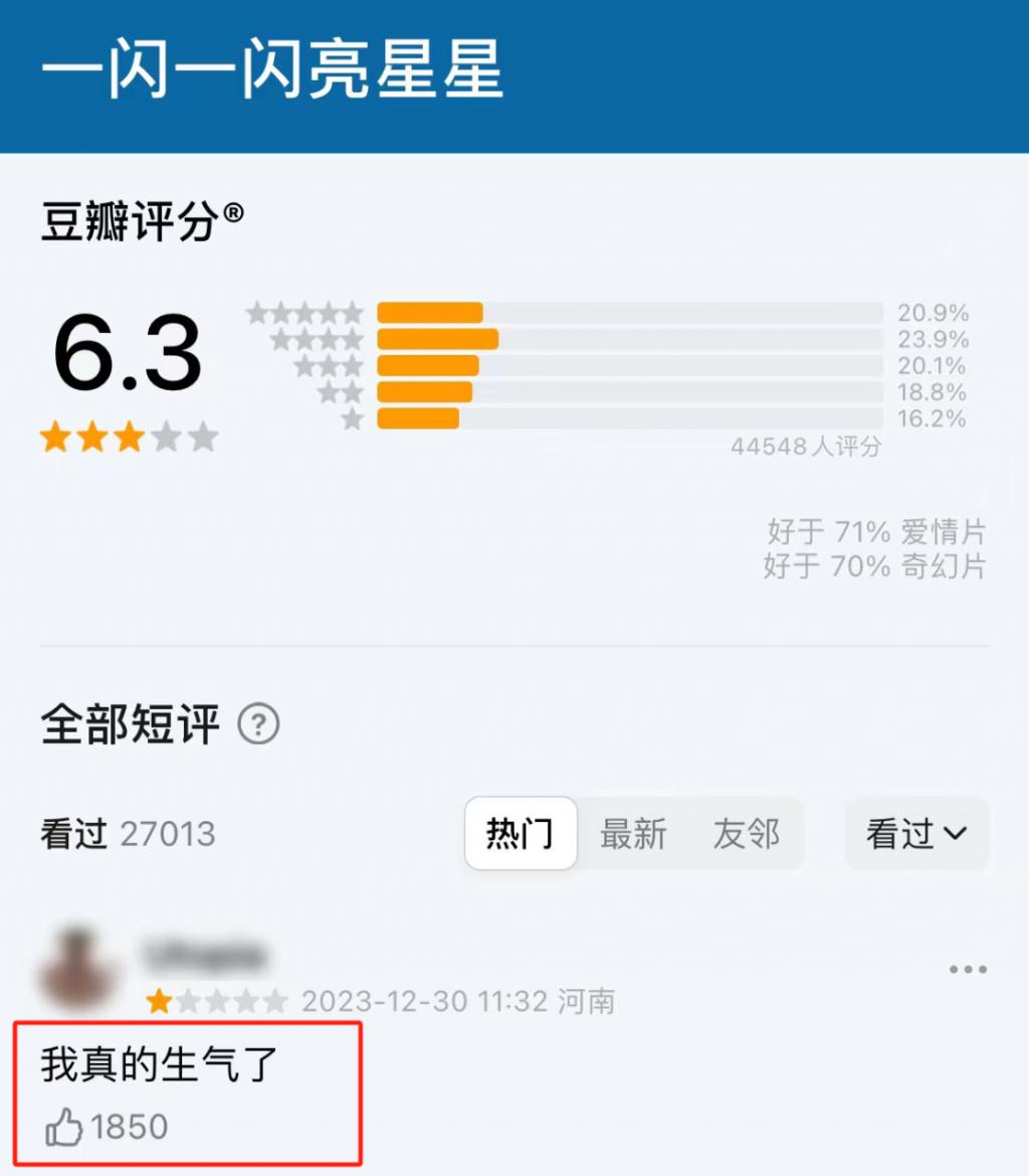 但片子质量实在太差,第二天票房就惨跌 90%。目前豆瓣 2.8 的评分,全都是一两星的差评。