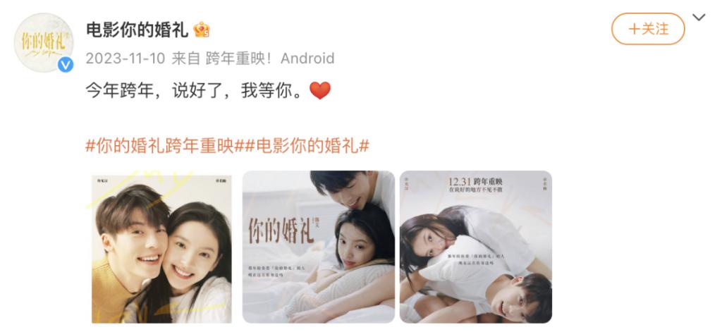 而另一边,另一部国产爱情电影《你的婚礼》时隔两年重映了。