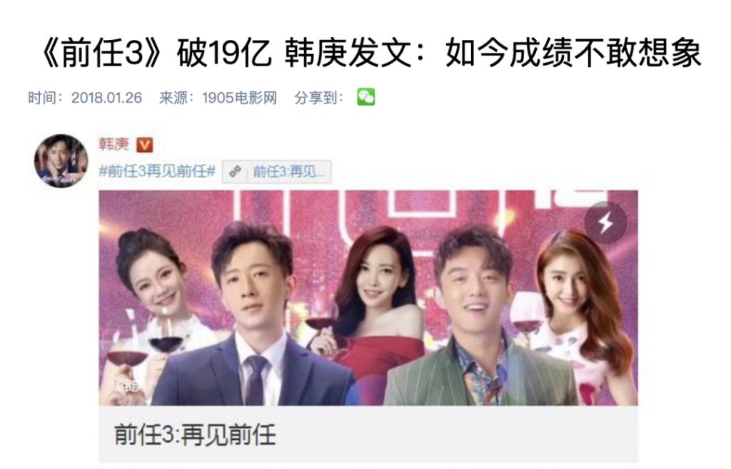 2017 年跨年档上映的《前任 3:再见前任》更是以 19.4 亿的成绩,成为爱情片的票房奇迹。