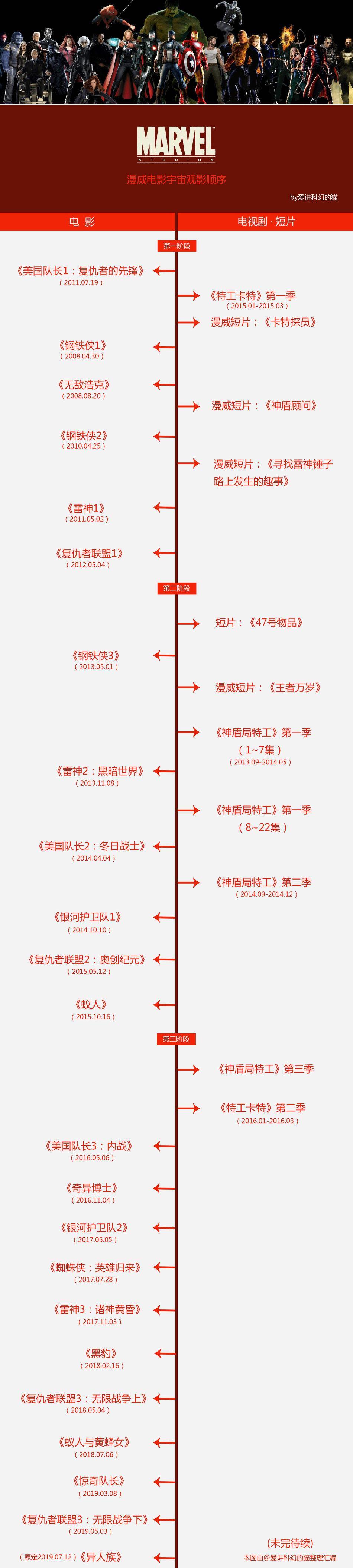 首先这里观影顺序不包括索尼漫威宇宙、福克斯漫威宇宙,如死侍,X战警,金刚狼等。其次这是按照剧情发展排列的,不是按照上映时间,便于理解。