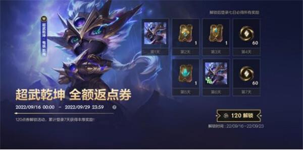 120点券购买后立即获取超武乾坤 凯南皮肤,活动期间累计登录7天即可领取全额120点券。