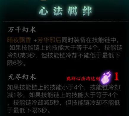 5.心法羁绊是指通过指定的组合同时佩戴在技能链主心法上来激活强大的效果