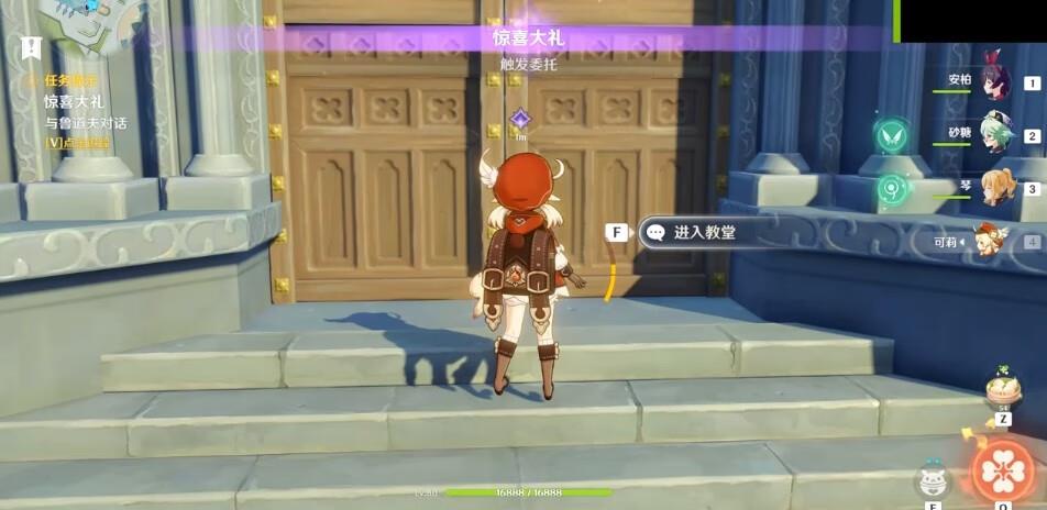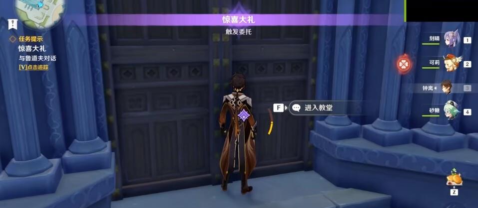 惊喜大礼任务需要玩家前往教堂鲁道夫对话。而要完成成就“四风佑我”,则需要玩家第4次刷到惊喜大礼任务,然后了解到吉丽安娜的故事才可以完成成就。