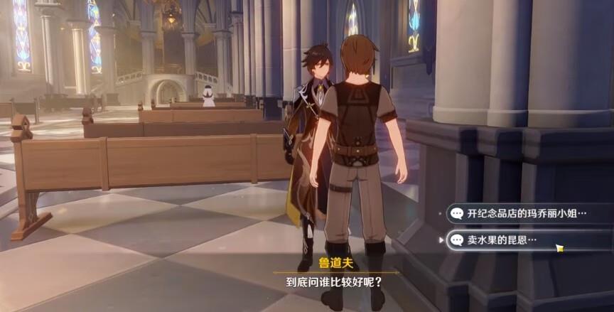 玩家和玛乔丽对话,花费900摩拉购买一个礼物。