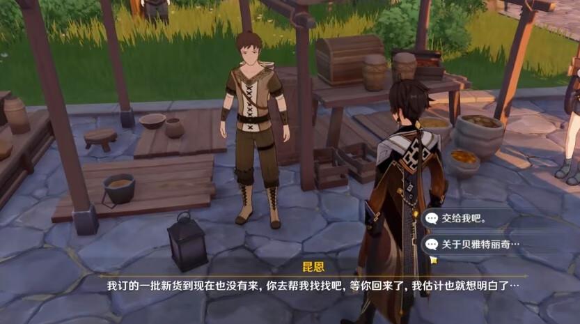玩家和卖水果的昆恩对话,去寻找货车。
