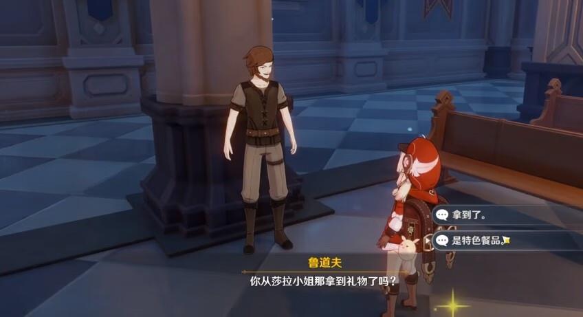 然后和鲁道夫对话,即可完成第一部分的“惊喜大礼”任务。