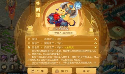 首先触发奇遇事件,需要经历职业成长、休闲娱乐、福运钱庄、经商赚钱、房契投资和寻找伴侣的考验。