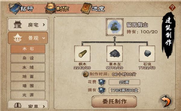 凉茶桶:花费一些材料泡制凉茶,耗时4小时,泡制完毕后会触发一些特殊事件,诸如:碰到杂货商推销物品,碰到神秘女侠给你4两银子,碰到山民留一些材料,+20体力,也可以去别的玩家房宅偷凉茶喝+6体力。