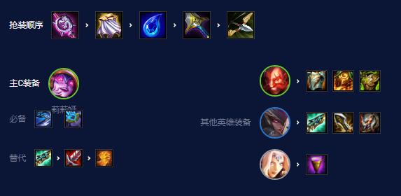 莉莉娅优先离子火花和巨杀,第三件补回复装,肉装全都给布隆,其他输出装给皎月。