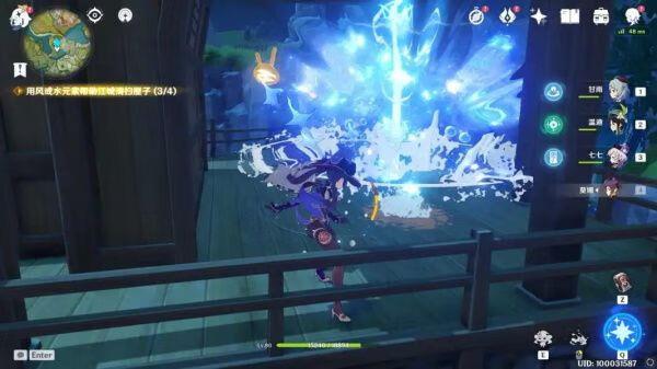 屋内的污渍很明显,共有四处,用水元素角色进行攻击或释放技能将污渍清理干净即可。
