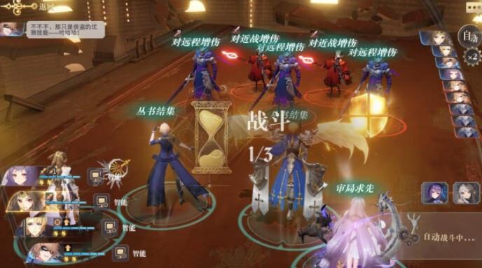 知道敌人的属性之后,我们就拿出针对性方案,如果你的队伍主要以是远程输出,那我们就需要先清第一阶段的近战怪,防止他们秒掉我们的主力,反之如果我们的主力是近战居多,就先清理带有近战增伤的敌人,处理BOSS时,我们的站位要站的分散一些,然后带上加盾或是能回血的幻书,《沙之书》阿莱娜的复活对付BOSS时格外好用,可以防止队友被秒。