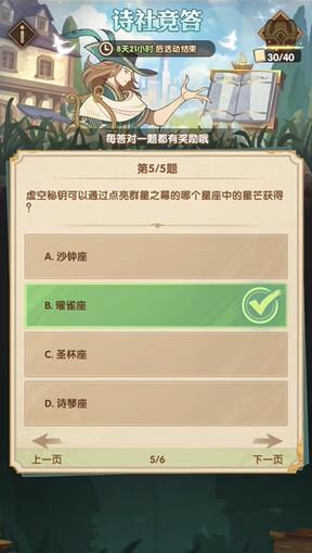 问题五:虚空秘钥可以通过点亮群星之幕的哪个星座中的星芒获得?